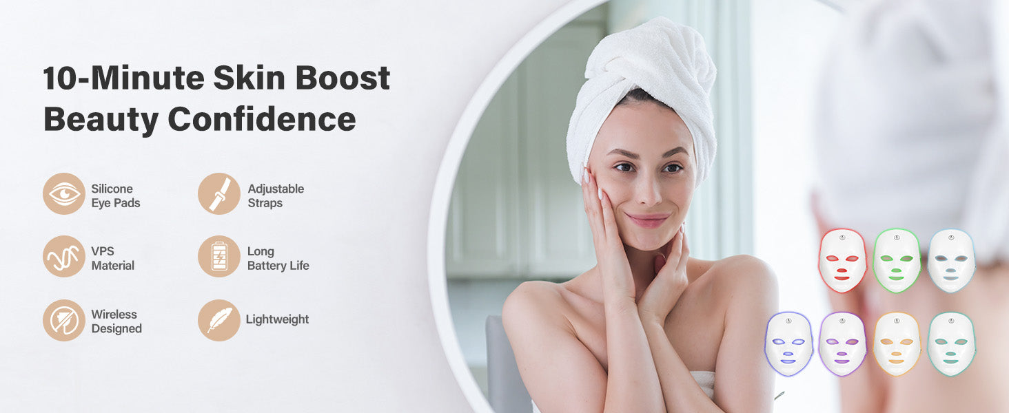 Multiple light settings target different skin concerns to enhance glow and smoothness.